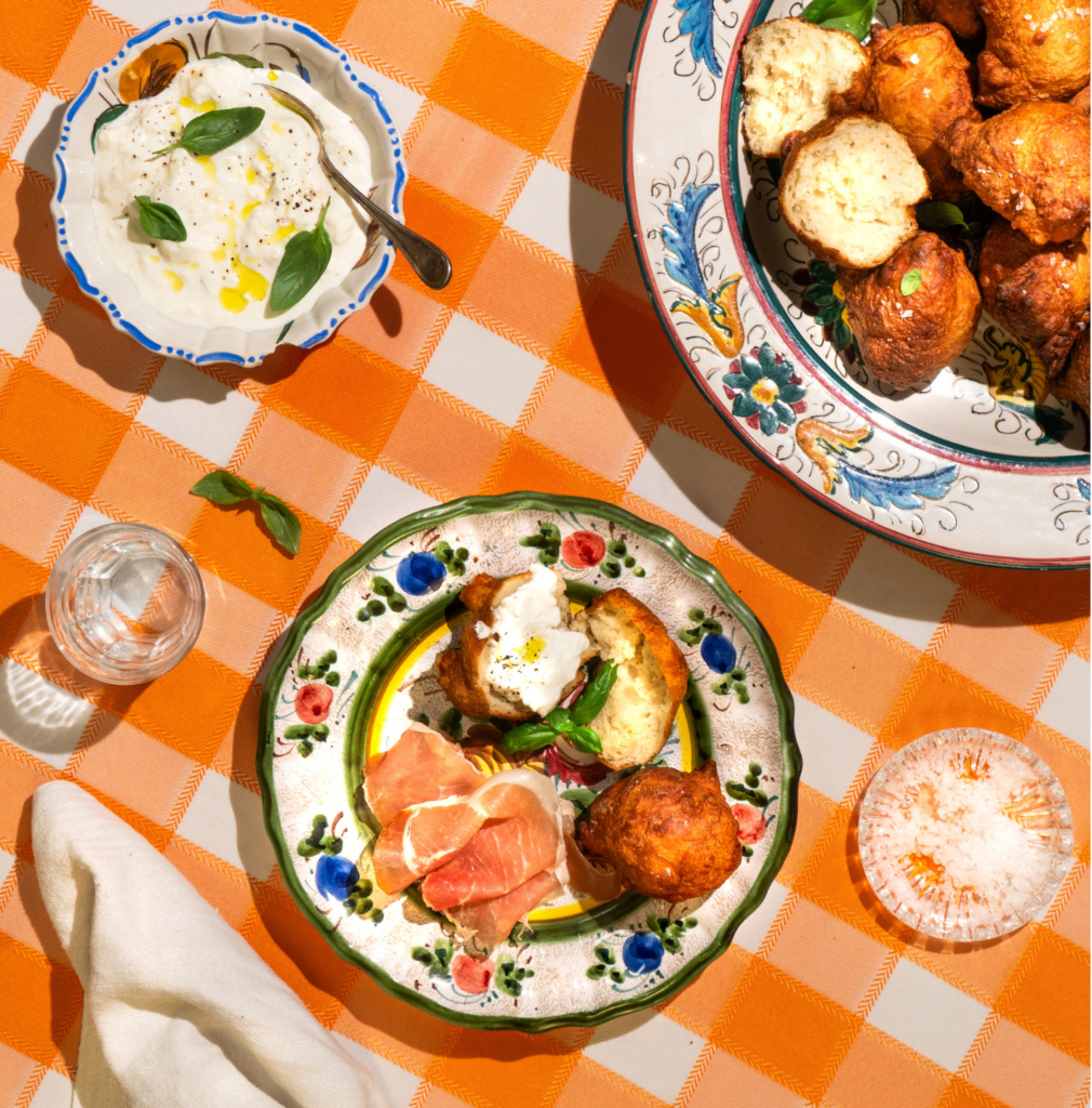 Frittierte Zonzelle mit Prosciutto Crudo und Stracciatella-Käse