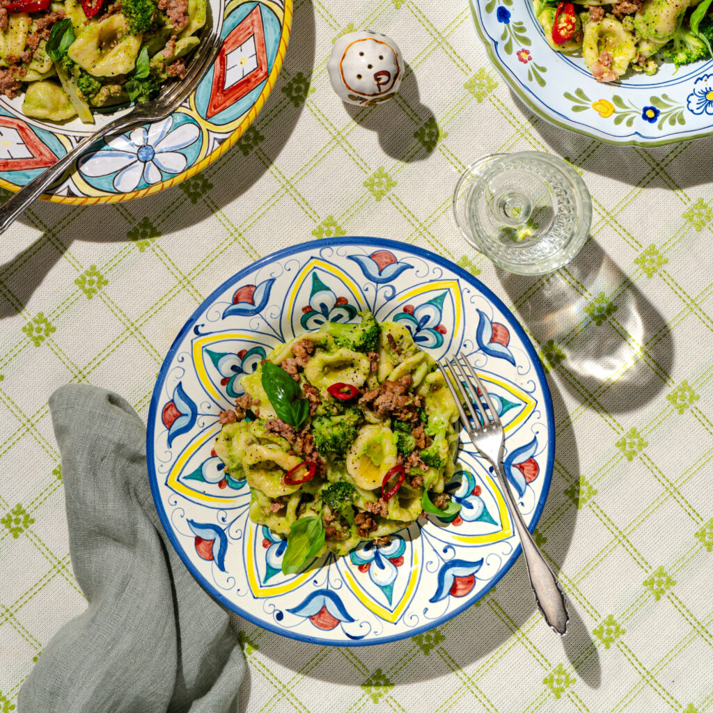 Orecchiette con salsiccia e broccoli ist ein traditionelles Gericht aus Apulien, einer Region im Süden Italiens, die für ihre köstliche Pasta und frischen Zutaten bekannt ist. Die Orecchiette-Nudeln, die aufgrund ihrer Ohrform so genannt werden, sind ein typisches Element der apulischen Küche. Zusammen mit der würzigen Salsiccia und dem zarten Brokkoli entsteht ein herzhaftes und aromatisches Gericht, das die Aromen der Region perfekt widerspiegelt.